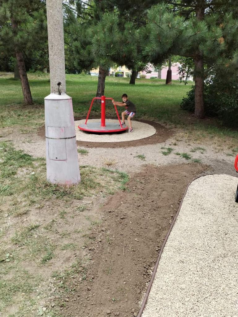 Na pozemku města u hasičárny došlo z bezpečnostních důvodů k výměně starých herních prvků, které již nesplňovaly bezpečnostní normy, za nové. Každý certifikovaný herní prvek však má svou ochrannou zónu, ve které se nesmí nacházet žádná pevná překážka a vzhledem k tomu, že stávající prostor je limitovaný lampou VO a vzrostlými stromy, nebylo již možné do tohoto prostoru umístit klouzačku.🛝 Pokusíme se ještě po dohodě s provozovateli Restaurace u hasiče najít náhradní prostor, odpovídající všem normám. Pokud by město tyto normy nedodrželo, nedostane na herní prvky bezpečnostní revizi.🚫 Rovněž je v plánu realizace oplocení mezi přilehlou místní komunikací a prostorem s herními prvky.