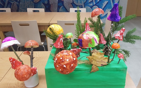 kina, kde po rukama dětí vznikaly houby rozličných barev, tvarů a velikostí.
