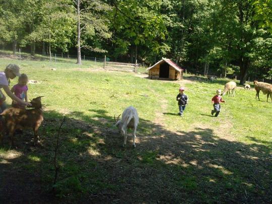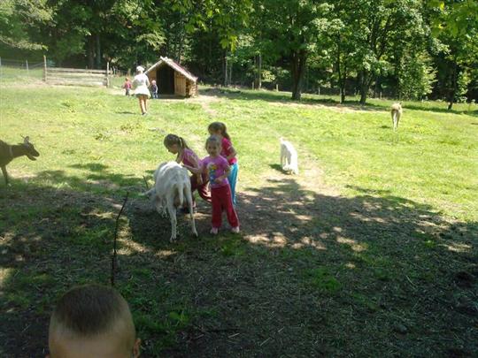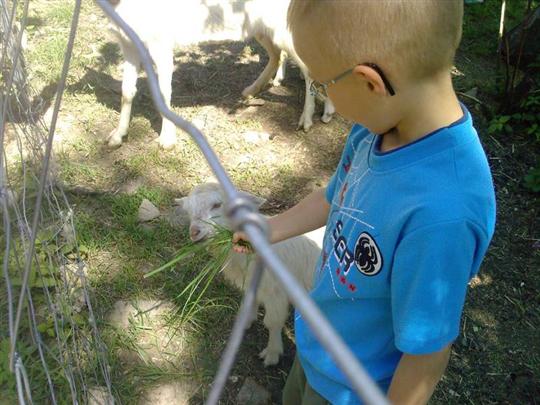 krmení zvířátek na farmě v Liboňově