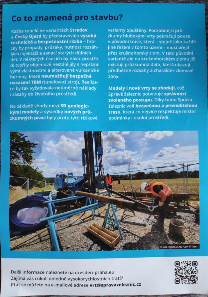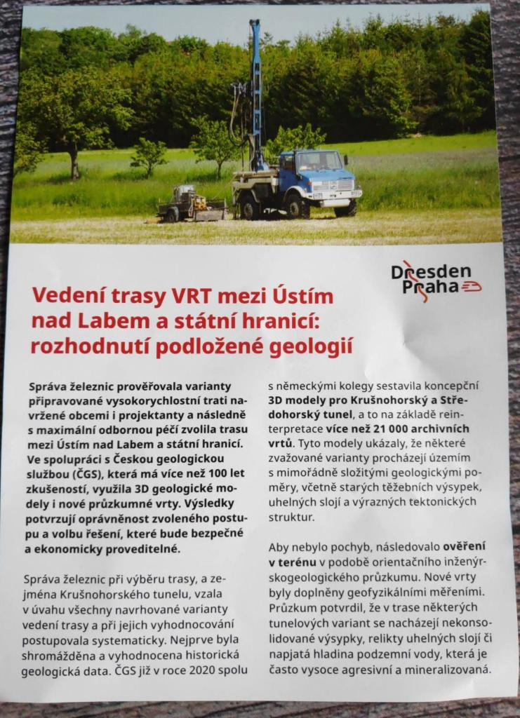 Teprve po jeho vyhodnocení získáme přesnější informace o geologických poměrech a o reálných možnostech vedení trasy VRT v našem městě.